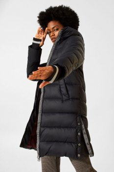 А чёрная куртка с высоким воротником вообще может стать любимицей любой девушки, ведь её можно надевать и со смелым мини, и с кюлотами, и с любимыми джинсами. Важно, что внутри таких пуховиков синтепон, сделанный по новой 3-М технологии. Все, что остается — добавить аксессуар, вроде правильного головного убора.