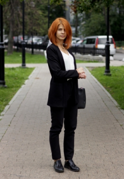 В этот раз мы решили устроить соревнование между образами героинь, которых мы встретили на улице. На первый взгляд они очень разные, однако обе девушки выбрали лаконичный стиль, к тому же обе — в брюках.