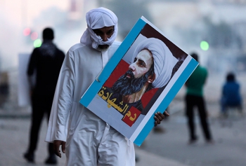 Протестующий в Бахрейне с портретом казненного шейха ан-Нимра. 8 января 2016 Фото: Hasan Jamali / AP