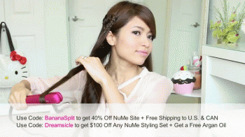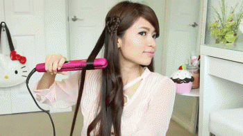 • Кончики косичек подкручиваем с помощью стайлера. Прядь рядом с косичками закручиваем аналогично предыдущей:
