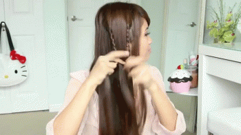 • Рядом с уже готовой косой заплети еще одну, как показано на гифке: