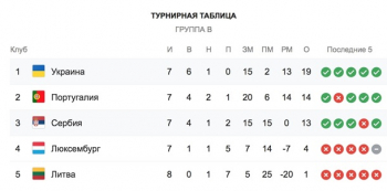 Сборная Сербии в группе была разгромлена в гостях Украиной (5:0), набрала одно очков в двух поединках с Португалией (1:1 — в Лиссабоне, 2:4 — в Белграде), обыграла Люксембург на выезде (3:1) и дома (3:2), а также сработала по максимуму в играх с Литвой (4:1 — на своем поле, 2:1 — в гостях).