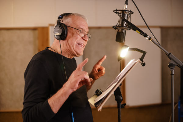 Сергей Гармаш во время озвучания анимационной комедии «Тайная жизнь домашних животных 2»