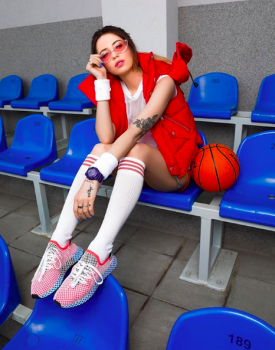 Надя Дорофеева обожает кроссовки и обувает их как под спортивную одежду, так и под классические костюмы и платья.