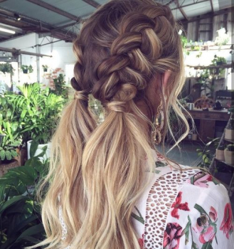 Обладательницам длинных и средней длины волос рекомендуем создать прическу на пляж в виде стильных плетений кос, собранных волос в высокий хвост и пучка из жгута, или же по-детскому наивную прическу «мальвинку», но главное — не забывай об аксессуарах. Летом 2018 в моде яркие банданы, повязки для волос, стильные ободки и цветочные аксессуары. Ты можешь повязать бандану тонкой яркой полосой или же украсить волосы цветами.