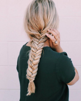 Это необычная и очень простая альтернатива обычной французской косы. Чтобы выполнить эту прическу, раздели волосы на две части. С каждой половины бери по маленькой пряди, и вплетай внутрь. Способ плетения похож на обычную косу, только вместо трех прядей ты используешь две. Продолжай плести пока у тебя не получится аккуратная косичка рыбий хвост.