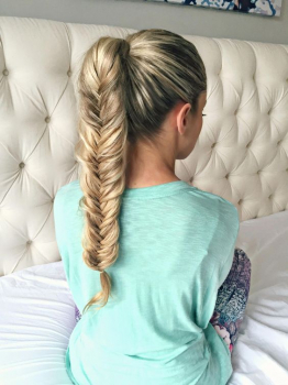 Рыбий хвост также красиво смотрится в хвосте или на двух косичках.