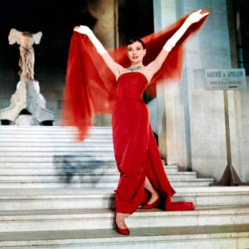 Очередная роль Одри Хепберн, персонаж которой получил звание иконы стиля. В фильме редактор женского журнала Quality Мэгги Прескотт и фотограф Дик Эйвери находятся в поиске героини обложки издания. Не просто красивой девушки, а интеллектуалки, способной перевернуть мир моды. Нужный типаж они находят в продавщице книжного магазинчика Джо. Культовый образ главной героини – красное платье-бюстье в пол – создал все тот же Юбер де Живанши. За свою дизайнерскую работу он получил премию «Оскар».