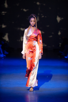 Линии изделий были прорисованы с одеяний корсаров — блузы с широкими рукавами и расклешенными манжетами, брюки и жакеты ярких оттенков из расшитых и декорированных тканей. Так родилась тема коллекции — встреча французских и османских корсаров (пиратов) — Старого Света с Востоком.
