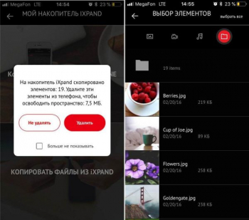 Ixpand Drive позволяет при копировании создавать новые папки, чтобы исключить образование свалки с файлами. Более того, по завершении процедуры копирования тех же фотографий из iPhone на накопитель приложение предложит удалить их из памяти смартфона для высвобождения пространства. Это пригодится, к примеру, в поездке, когда внутренняя память телефона забита видео и фото, и их  срочно нужно куда-нибудь переместить.
