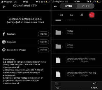 В приложении есть функция предварительного просмотра – вы всегда будете видеть содержимое файла, если это видео или фотография. При необходимости можно активировать функцию резервного копирования – в этом случае при подключении флешки к смартфону или планшету приложение Ixpand Drive самостоятельно скопирует все файлы из заранее указанных каталогов. Можно также в автоматическом режиме копировать данные календаря и список контактов и попутно выгружать данные из социальных сетей – неровен час, что их заблокируют в России, и доступ к профилям в них будет закрыт.