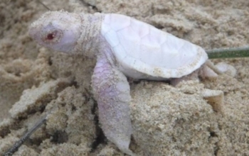 Черепаха-альбинос обнаружена среди детенышей зеленой черепахи
