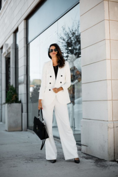 • Брючной костюм. Деловой и в меру сексуальный брючной костюм также будет отлично смотреться в новогоднюю ночь. Особенно такой наряд подойдет девушкам, которые не любят гламурных платьев и желают оставаться в строгом образе даже на вечеринке.