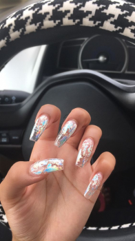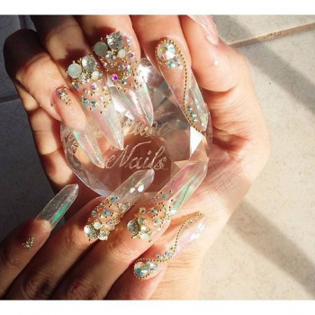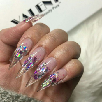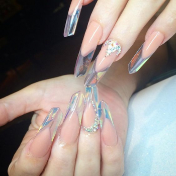 Прозрачные ногти выглядят необычно, но нейл-мастера рекомендуют украсить ногти стразам, блестками, глиттером. Кроме того, можно использовать специальные наклейки со светоотражающими частицами.