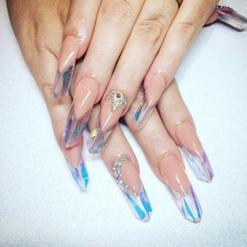 Главная фишка маникюра со льдом в том, что для его создания нужно воспользоваться специальными прозрачными накладными ногтями. Поэтому такой маникюр будет выгоднее смотреться на длинных ноготках, нежели на коротких.