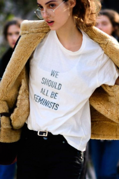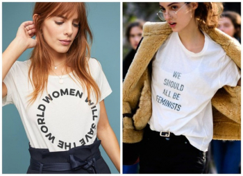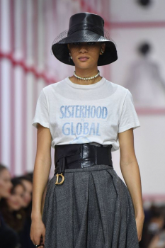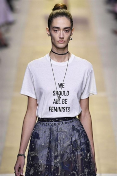 На презентации осенне-зимней коллекции бренда Dior креативный директор бренда Мария Грация Кьюри на весь мир заговорила о феминизме. Дизайнер представила футболки с надписями Sisterhood is powerful и Sisterhood is global. Ранее она также выпускала футболки с лозунгами We should all be feminists.