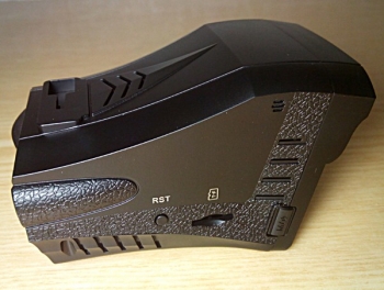 На левой грани корпуса помещена кнопка включения и выключения устройства, которая также позволяет оперативно настраивать чувствительность радар-деректора или вовсе выключать его. Рядом с ней находятся небольшая кнопка Reset и слот под карты microSD.