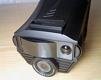 На лицевую часть устройства производитель поместил линзу гетеродинового приемника, который, собственно, и улавливает сигналы радаров, а ниже нее находится глазок камеры видеорегистратора, угол которой, напомним, составляет 160 градусов. GPS-модуль скрыт в недрах корпуса.