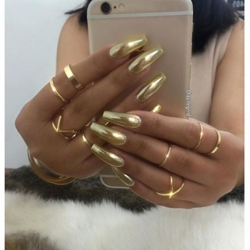 - Золотистый лак на ногтях. В 2017 году золотистый цвет является самым трендовым, но это не означает, что и маникюр должен быть в таком цвете. Дорого-богато в данном случае выглядит вульгарно и мужчины это замечают и делают выводы.