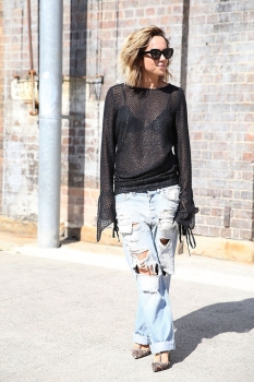 - Необработанные края. Это тоже вариант из одного поворота, с разницей только в том, что ты ножницами срезаешь нижний, застроченный край джинсов, как бы создавая эффект бахромы. Это добавит твоему образу лёгко небрежности.