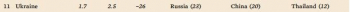 Украина представлена в рейтинге одной компанией — госконцерном Укроборонпром. Его объемы продаж оружия по сравнению с 2016 годом упали на 11 процентов — до одного миллиарда долларов. В исследовании говорится, что это связано с инфляцией.