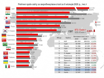 Среди 62 мировых производителей стали, включенных в рейтинг Worldsteel, Украина сохранила 13 место, что соответствует ее позиции за январь-июнь 2019 года.