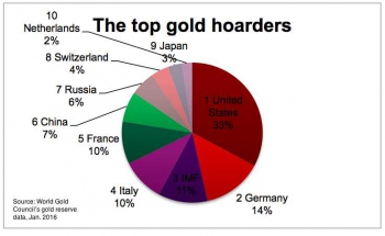 Подпись к изображению: Состав и структура первой десятки мировых тезавраторов золота