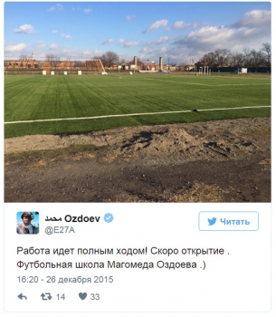 – Мой сын перед Новым годом открыл собственную футбольную школу в Ингушетии. Курировать ее буду я, так как заниматься проблемами школы нужно каждый день. Перед открытием школы мы с сыном в пятый раз провели в Ингушетии детский турнир по футболу. В соревнованиях приняли участие четыре команды. Победителем турнира стал коллектив из поселка Барсуки, – поведал отец 23-летнего игрока Мустафа Оздоев в интервью «Чемпионат.соm».